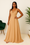 Hafsoit Mode – Robe longue fluide satinée camel – Bretelles fines croisées – Robe élégante soirée, mariage ou gala